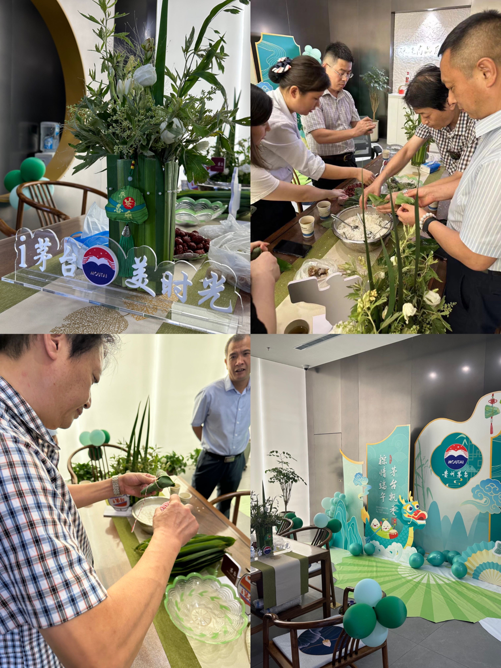 活動期間,專賣店員工為客戶講解第三代專賣店設計理念和陳列布局,著重介紹巽風app和線上申購情況,講解結束后大家紛紛鼓掌。并表示對第三代專賣店及茅臺文化、五線發展等戰略更為了解。隨后大家就坐品鑒區,工作人員將提前準備好的糯米、粽葉、蜜棗等材料擺放整齊,由特別邀請的專業老師進行指導,大家都很認真的聽講,學習包粽子的技巧。很快,一粒粒晶瑩剔透的糯米、一片片翠綠清香的粽葉在一雙雙巧手下變成了一個個精美可口的粽子。