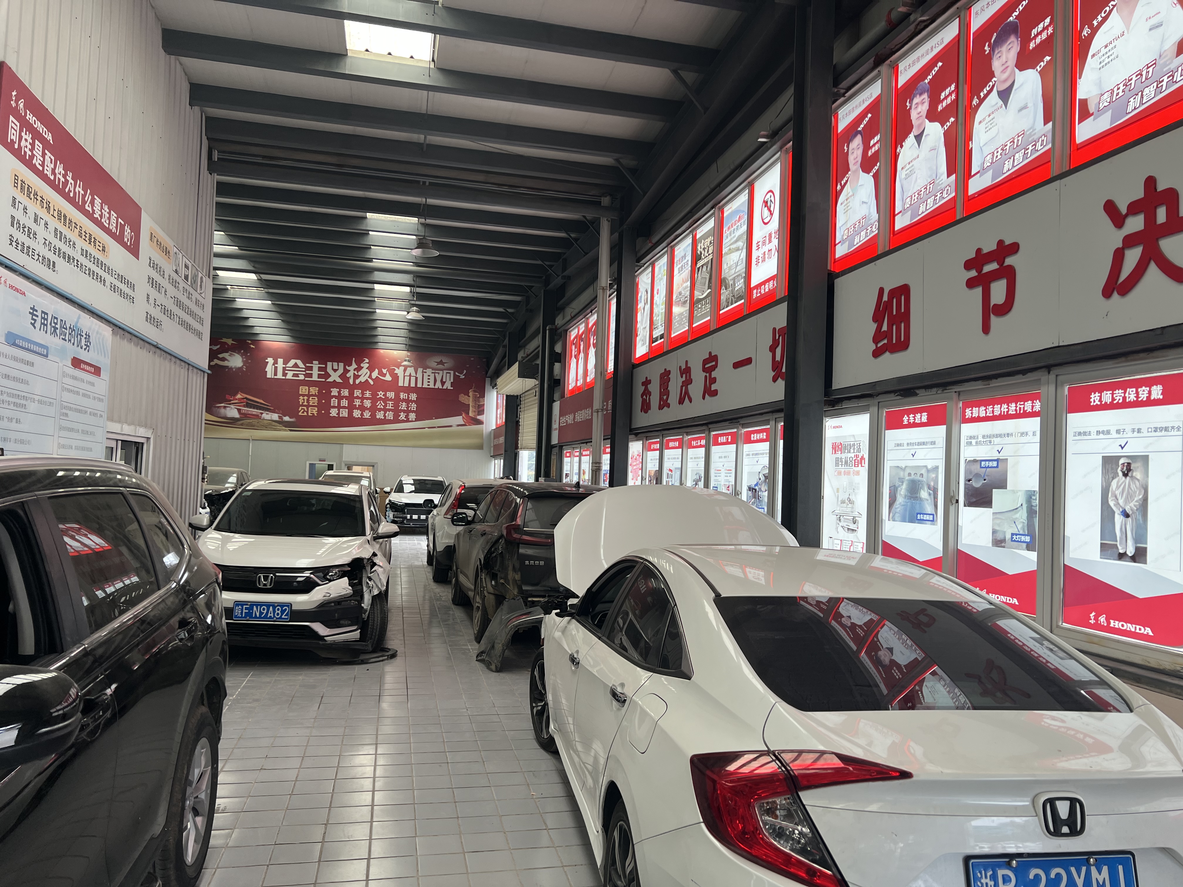 售后二車間擺放著待修的事故車