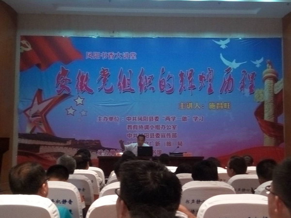 7月6日下午,鳳陽縣書香大講堂系列之“安徽黨組織的輝煌歷程”在縣圖書館報告廳舉行,鳳陽縣公司派員聆聽。講座由省委黨史研究室副主任施昌旺主講。縣委“兩學一做”學習教育協調小組辦公室、縣委宣傳部、縣委講師組、縣文廣新(旅)局、縣圖書館相關負責人以及縣直各部門黨員干部聆聽了講座。