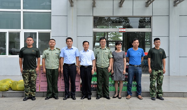 為進(jìn)一步增進(jìn)軍民關(guān)系,在“八一”建軍91周年之際,8月1日上午,鹽房定遠(yuǎn)項(xiàng)目徽鹽安徽飯店領(lǐng)導(dǎo)班子一行來到定遠(yuǎn)縣消防大隊(duì)走訪慰問官兵,在為他們送上西瓜、飲料、礦泉水等慰問品的同時(shí),也轉(zhuǎn)達(dá)了中共徽鹽地產(chǎn)定遠(yuǎn)項(xiàng)目黨支部對(duì)他們節(jié)日的問候與祝福。