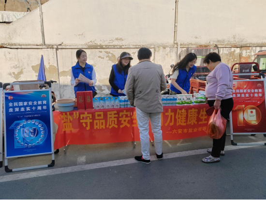 六安鹽業(yè)公司黨員志愿者走進開發(fā)區(qū)小廟農(nóng)貿(mào)集市,設立普法宣傳點,向居民宣傳國家安全相關知識,普及食鹽安全知識。