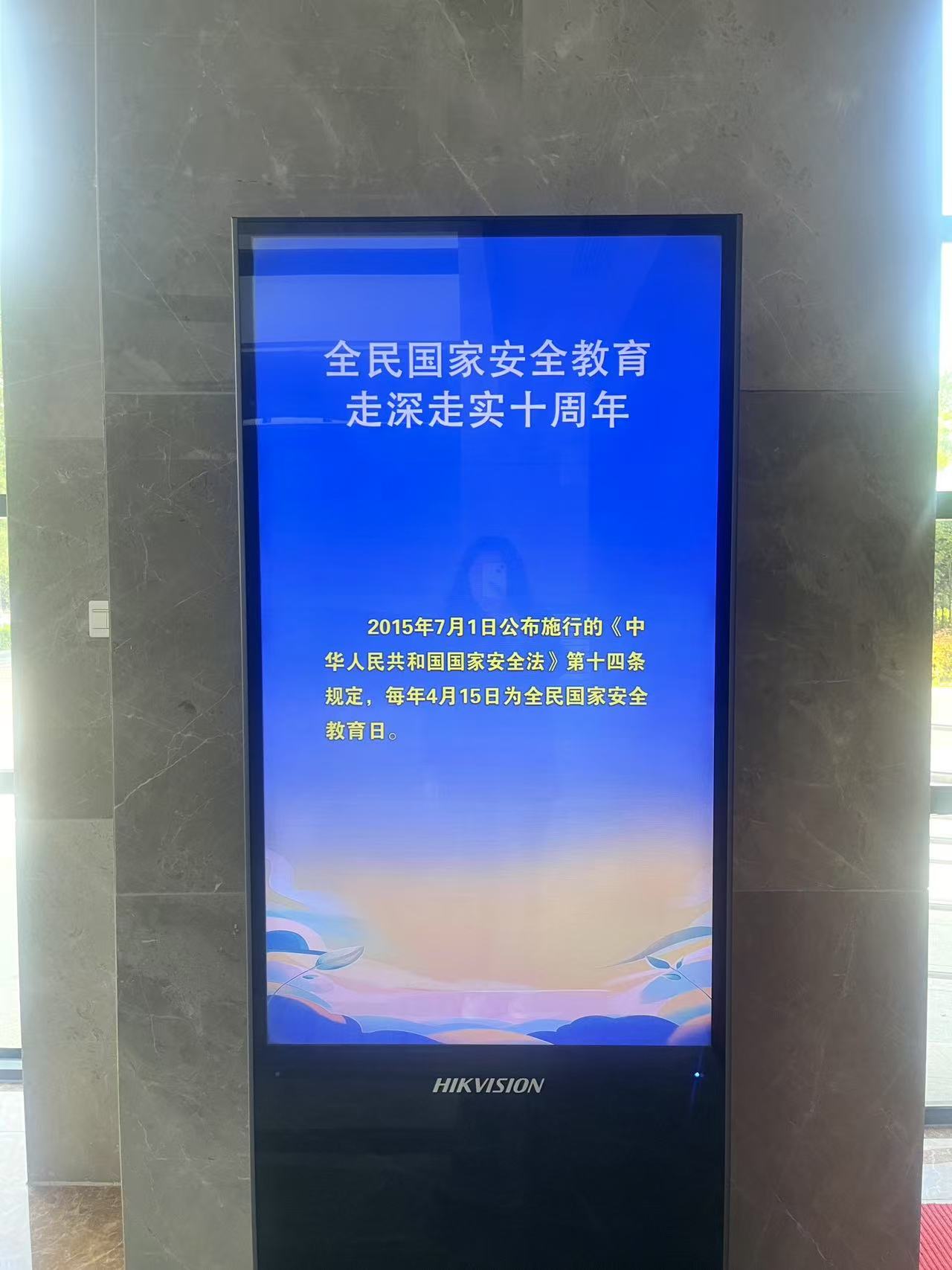 環(huán)境科技集團在辦公區(qū)域張貼“全民國家安全教育 走深走實十周年”主題海報,以醒目圖文傳遞國家安全核心要義;運用LED顯示屏播放“4.15全民國家安全教育日”PPT,一樓大廳連續(xù)滾動播放宣傳海報及警示案例,覆蓋員工日常辦公動線。