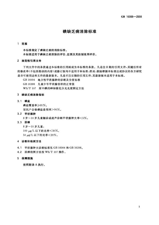 衛(wèi)生部國標(biāo)委發(fā)布GB16006-2008碘缺乏病消除標(biāo)準(zhǔn)