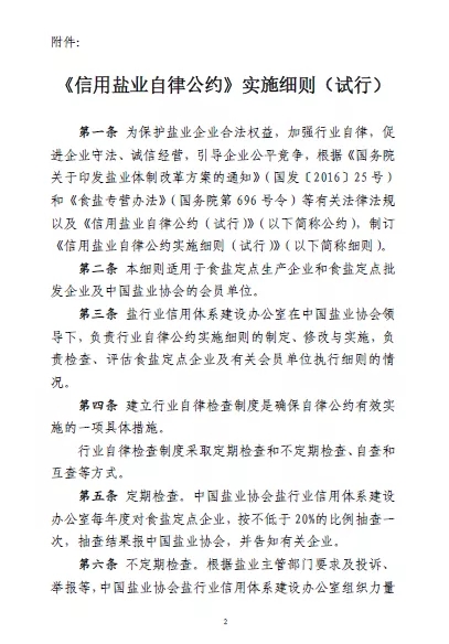 要了解《<信用鹽業(yè)自律公約>實(shí)施細(xì)則》(試行)的相關(guān)內(nèi)容,首先要從《信用鹽業(yè)自律公約》(試行)說起。