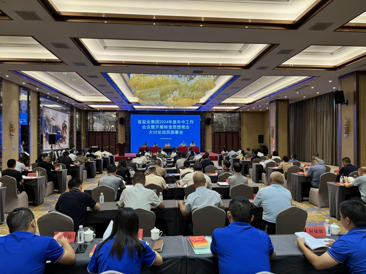 8月14日下午,省鹽業集團召開2024年度年中工作會議暨開展轉變思想大討論動員部署會,省鹽業集團黨委書記、董事長宇豐出席會議并講話,省鹽業集團黨委委員、副總經理(主持日常經營工作),合肥市鹽業公司黨委書記、董事長、經理張鷹主持會議。會議傳達了省生態環境集團2024年度年中工作會議精神及羅太忠書記對鹽板塊的有關要求,通報了省鹽業集團2024年上半年黨建、經營、黨風廉政建設等工作情況,解讀了《全省鹽業系統轉變思想觀念大討論工作方案》,對下一階段重點工作進行了安排部署,部分單位圍繞新業務開展進行了交流發言。