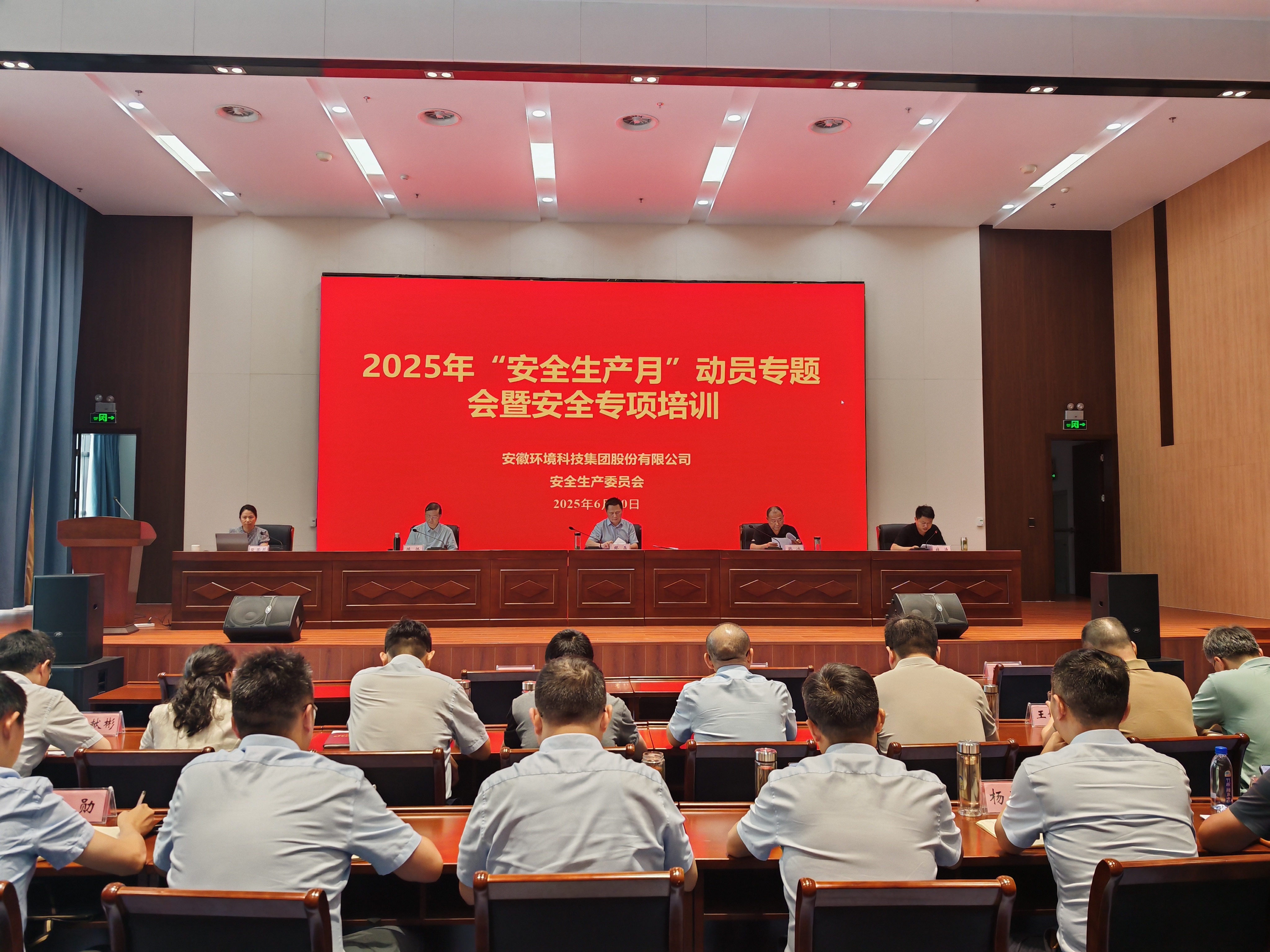 為深入貫徹落實(shí)國(guó)家關(guān)于安全生產(chǎn)工作的決策部署,強(qiáng)化全員安全意識(shí),壓實(shí)安全責(zé)任鏈條,安徽環(huán)境科技集團(tuán)于6月10日下午隆重召開(kāi)2025年“安全生產(chǎn)月”動(dòng)員暨安全專項(xiàng)培訓(xùn)會(huì),正式拉開(kāi)以“人人講安全、個(gè)個(gè)會(huì)應(yīng)急——查找身邊安全隱患”為主題的安全生產(chǎn)月活動(dòng)序幕。集團(tuán)領(lǐng)導(dǎo)班子成員、各部門(mén)、各子(項(xiàng)目)公司主要負(fù)責(zé)人、分管安全領(lǐng)導(dǎo)及專兼職安全管理人員等百余人現(xiàn)場(chǎng)參會(huì)。
