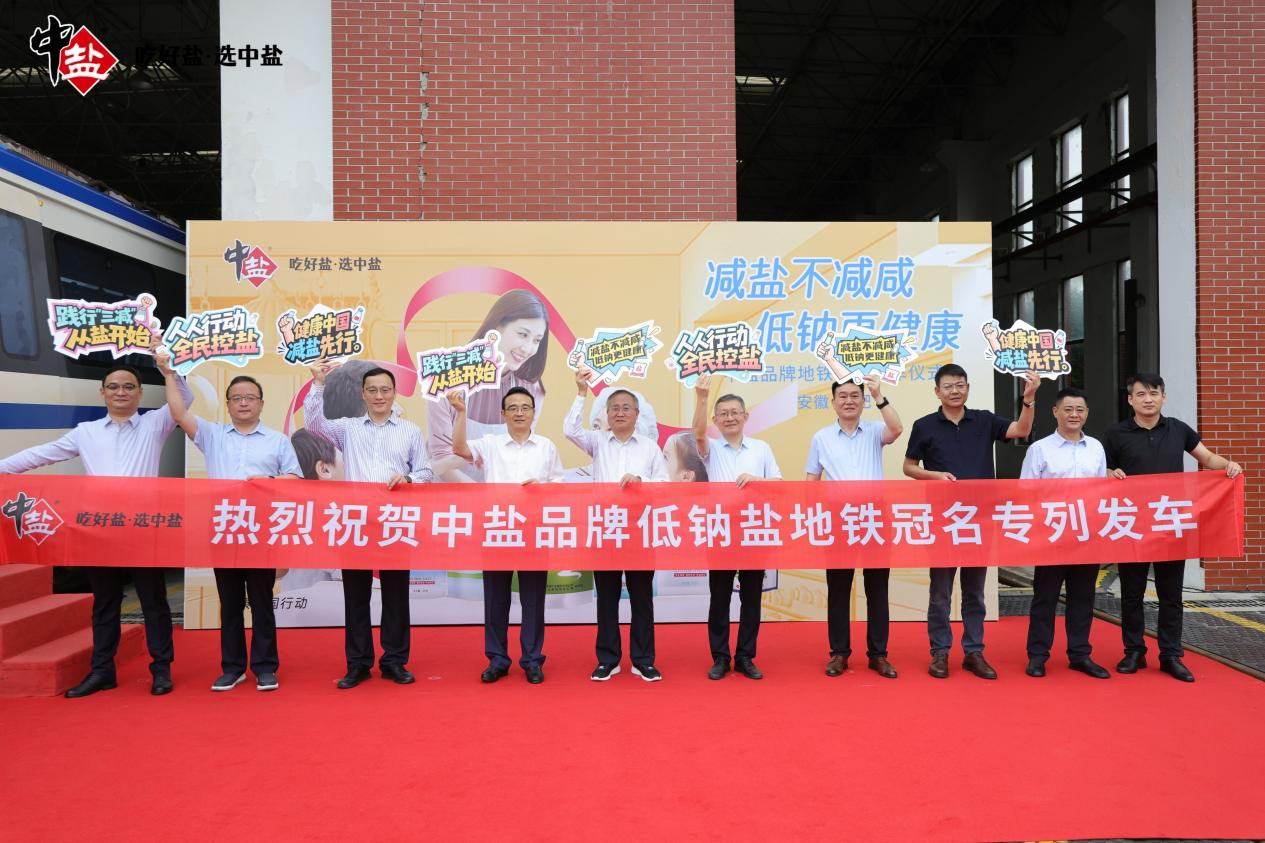 近日,中鹽品牌低鈉鹽地鐵冠名專列首發(fā)儀式于合肥南崗車輛段圓滿舉行。中鹽安徽鹽化集團(tuán)、中鹽東興鹽化公司、省生態(tài)環(huán)境產(chǎn)業(yè)集團(tuán)、省鹽業(yè)集團(tuán)、安徽國勝大藥房、安徽惠豐國藥、合肥軌道交通集團(tuán)、金鵑軌道傳媒公司等單位負(fù)責(zé)人及代表出席活動,共同見證中鹽品牌地鐵專列正式啟程。